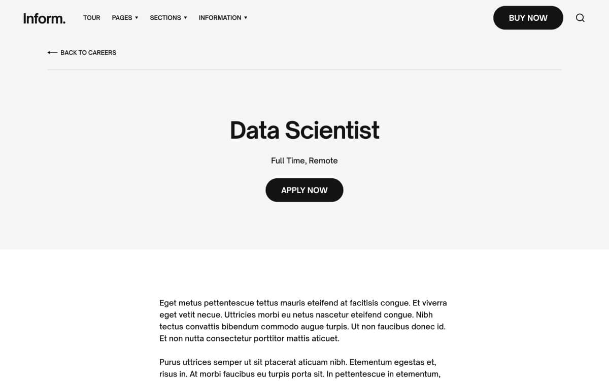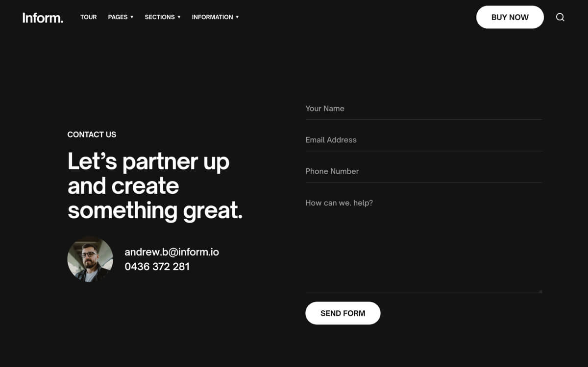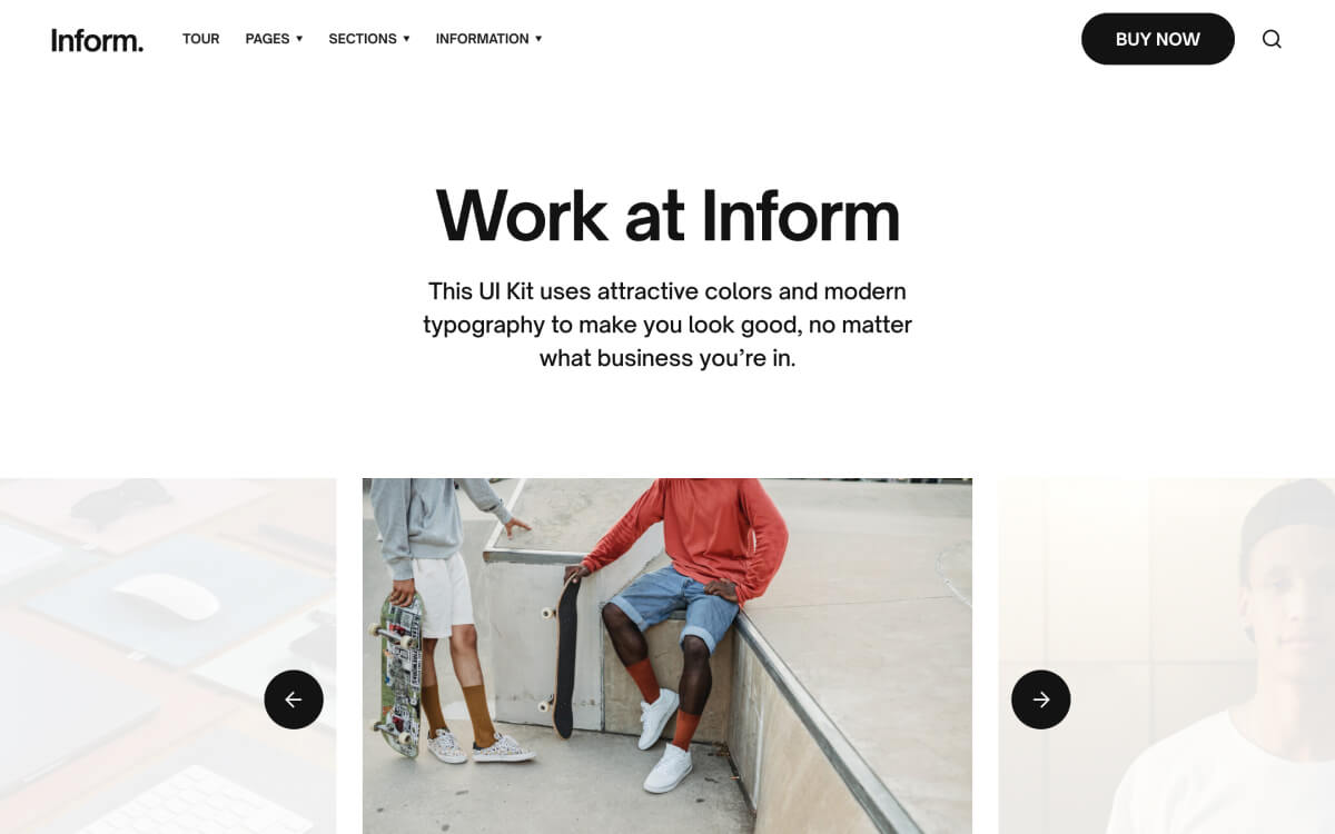 Inform features over 65 prepared sections that make creating pages easy. Just copy and paste the sections to any page.