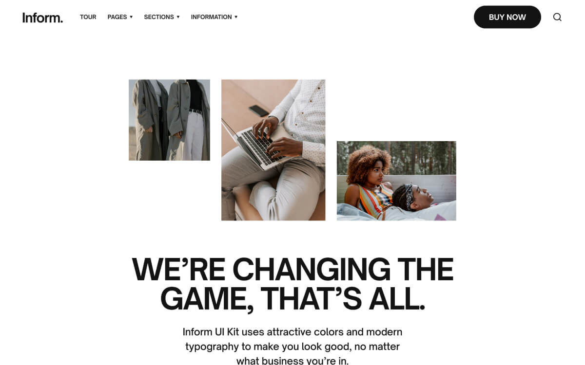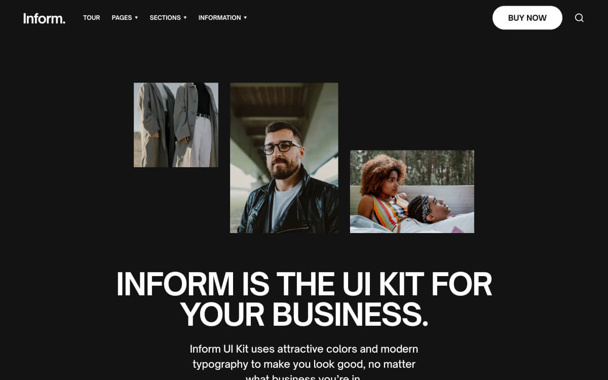 Express yourself through Inform’s bold typeface and no-fuss aesthetic.  Everything you need is on-hand with 70 page sections across 26 layouts.